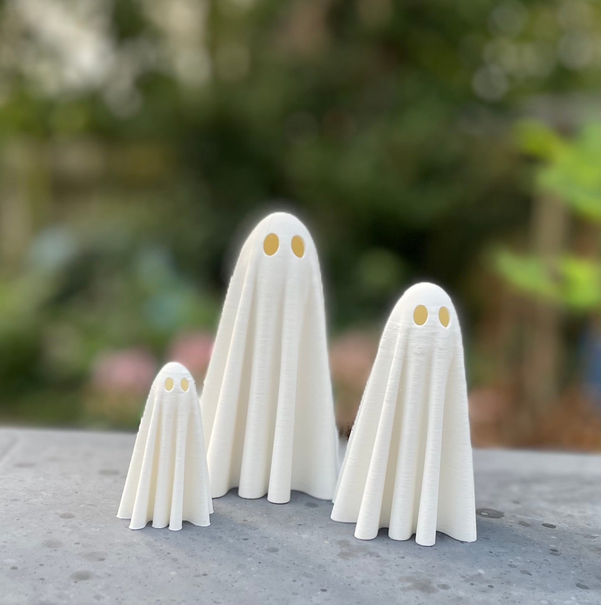 Once upon a time in Hollowville, a young inventor named Logan decided to create a white sheet ghost family for Halloween using his new 3D printer.