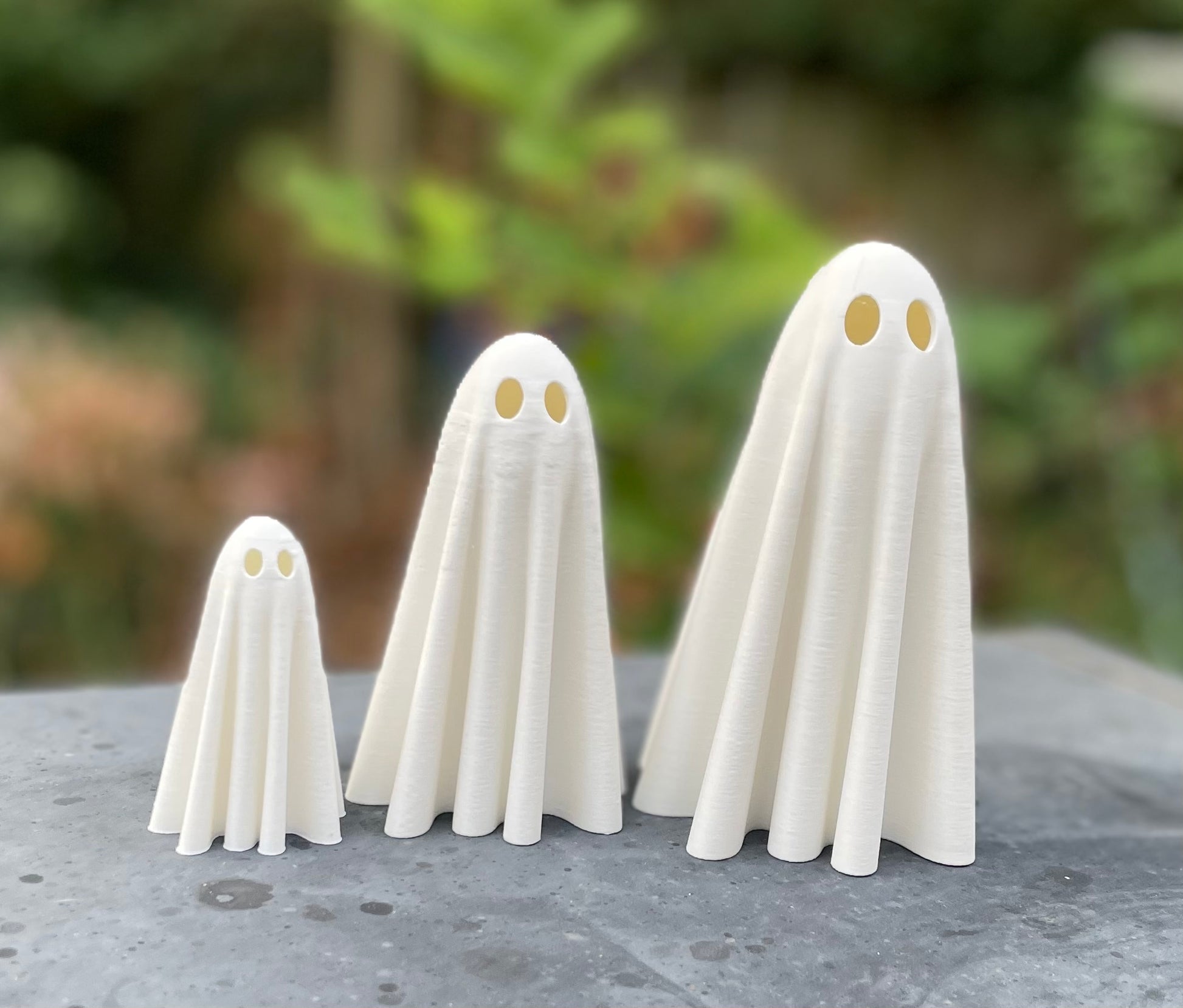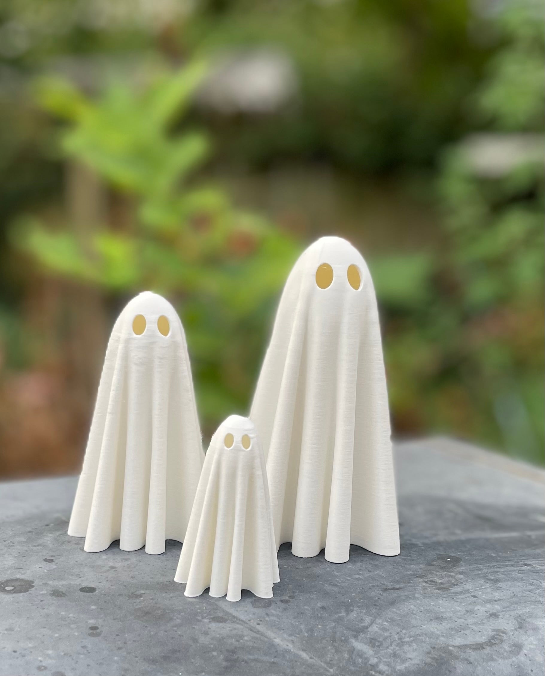 Logan watched in awe as his 3D printer brought the ghosts to life, layer by layer. The smooth, flowing texture of the plastic ghosts mimicked real fabric perfectly. Once they were complete, Logan set them up on his mantle with mini pumpkins and tea lights.