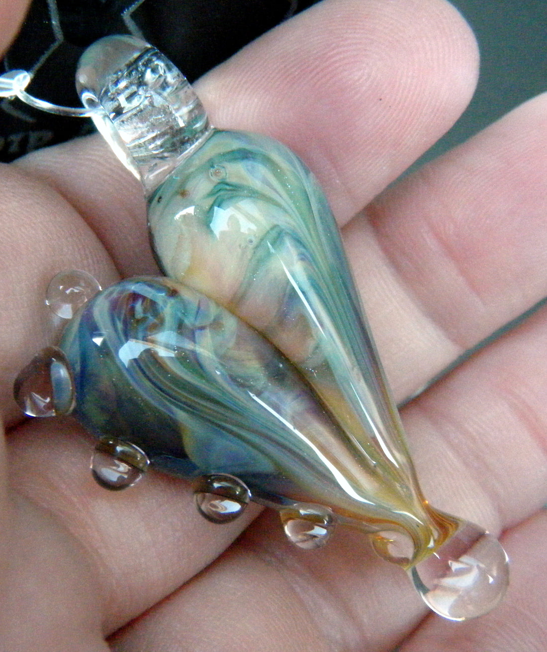 Bitten by the “glassworking bug” in 2005, Skip began using a torch, glass rods & tubes, and an open flame to create lampwork pieces. Early lampworking, as its name suggests, was crafted using the flame of an oil lamp, with the artist blowing air into the flame through a pipe. Today, lampworking glass is shaped using meticulous hand movements and small, metal tools. Because of the precision and artistry involved in glasswork, even the creation of a tiny pendant can take over an hour. The glass Skip uses in this delicate, creative process is called Borosilicate glass. It is commonly referred to as “Boro.” Boro has a high melting point, about 3000 degrees Fahrenheit. Once a piece is completed, it “soaks” in a kiln “bath” for about 24 hours and reaches a maximum temperature of 1400 degrees Fahrenheit.